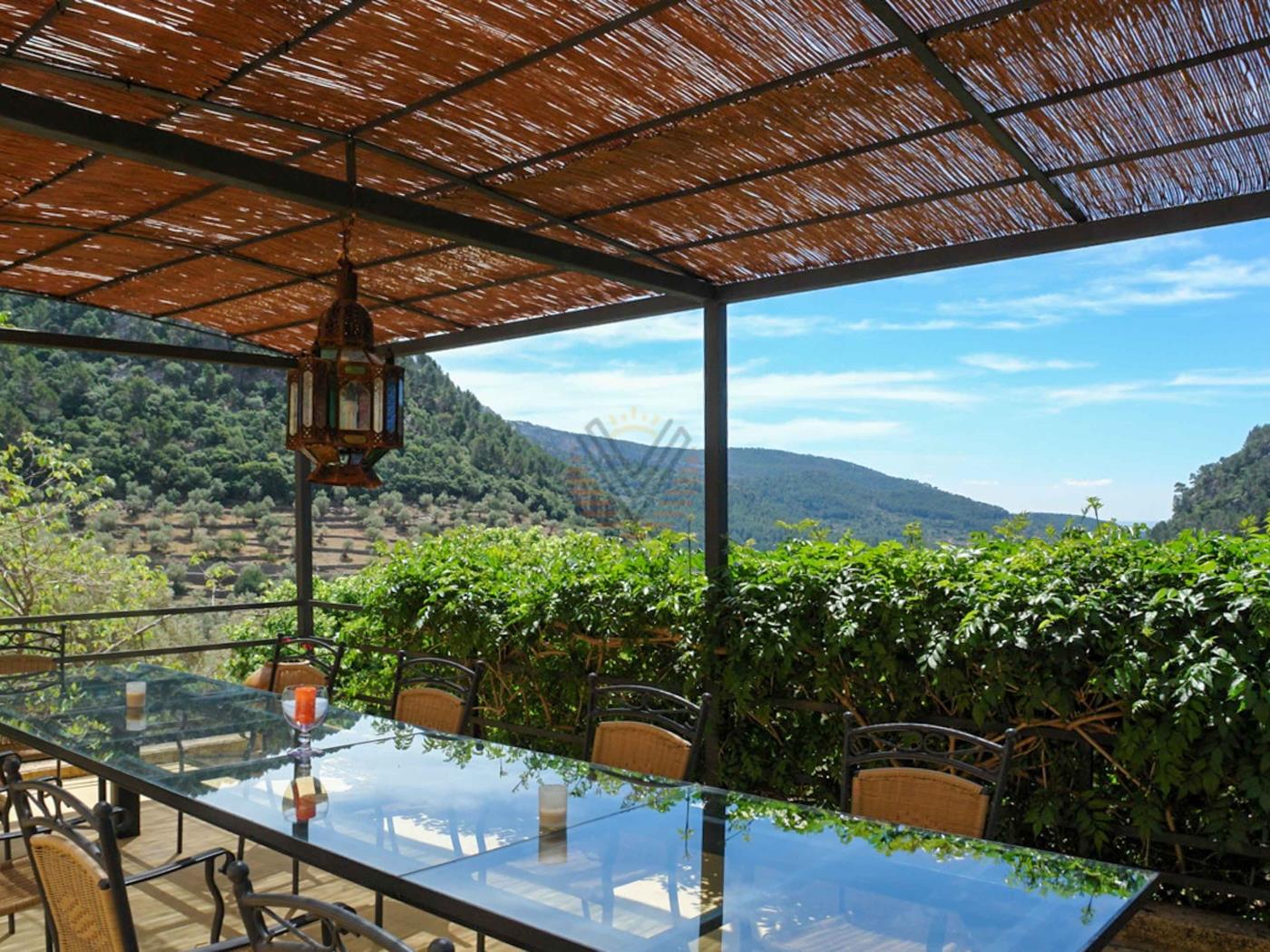 From the terrace and swimming pool you can enjoy spectacular views over the mountains and the valley of Bunyola to the Bay of Palma.
